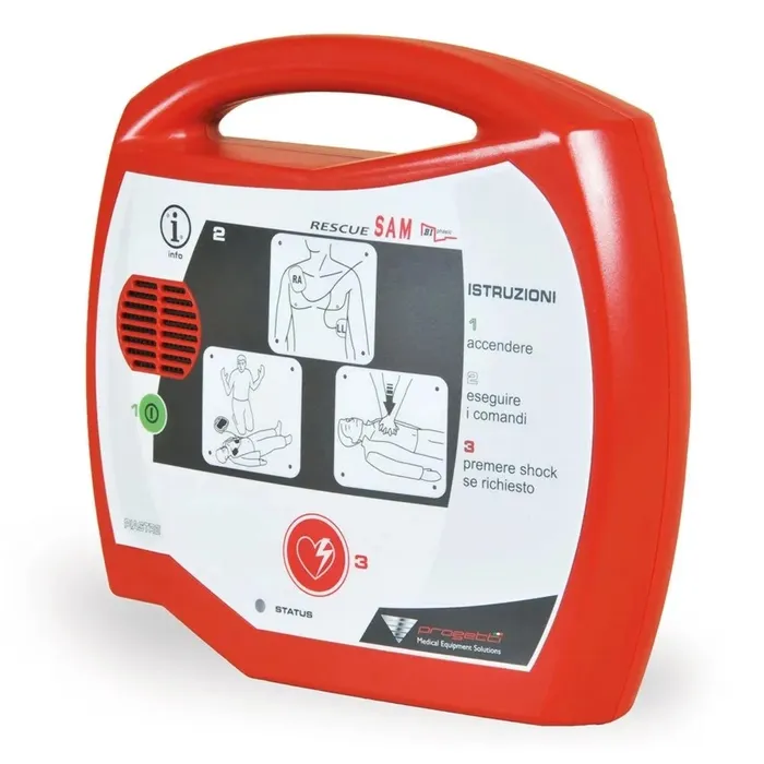 The Progetti Rescue SAM AED (RSM-001) is a compact and reliable Automated External Defibrillator designed to help save lives in emergencies such as sudden cardiac arrest. It provides clear, step-by-step voice instructions and visual indicators in both English and Arabic, making it suitable for use in public areas, workplaces, schools, and healthcare facilities. Built with durable materials and a long-lasting battery, it ensures dependable performance whenever needed. The lightweight design and included carry bag make it easy to transport and store for quick access during an emergency.